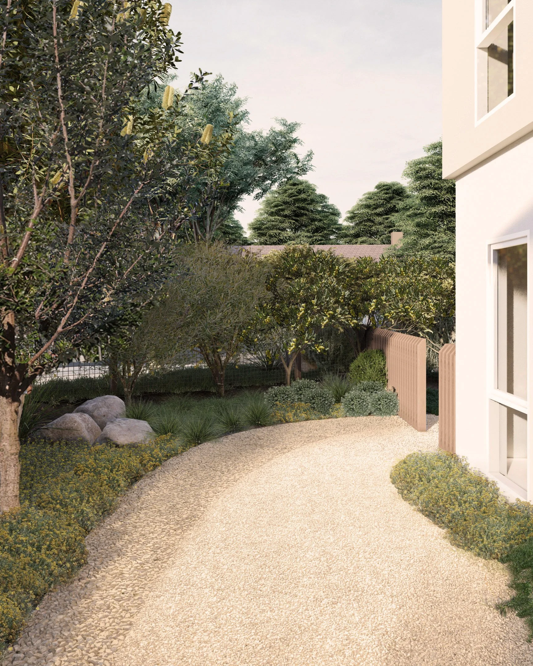 A collection of images and renders from our projects. Featuring details and elements of a Frond Landscape and showcasing the variety of styles a native garden can achieve